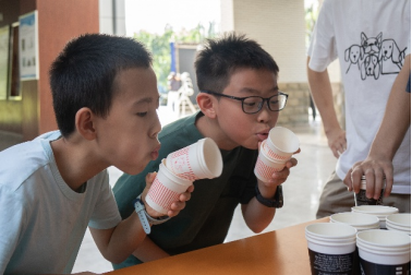 本届公众科学日最引人注目的是一系列互动体验项目。学院低温物理实验室何明全教授科研团队将-196℃的液氮倒入酸奶与冰淇淋粉的混合物中,瞬间白雾缭绕,宛如仙境。小朋友们一边惊叹于液氮倾泻时腾起的云雾,一边争相品尝现场制作的“星际冰淇淋”,在舌尖触碰到冰凉绵密口感的刹那,也真切体会到低温物理的神奇魔力。